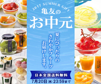 架空会社亀友が出すお中元でのバナー。色味を青で統一し、暖色が多いゼリーの写真が目立つように工夫。